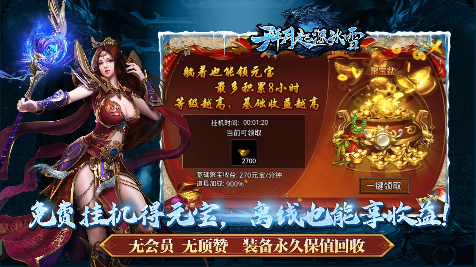 拜月起源冰雪为玩家带来热血的冰雪版本传奇玩法,精彩庞大的传奇世界,所有的区域都能够自由地展开探索,更多隐藏的区域等待着你的发现,加入到副本的挑战中,挑战强大的野怪boss,收获稀有的资源材料,助你到达战斗力的巅峰,称霸整个传奇世界。