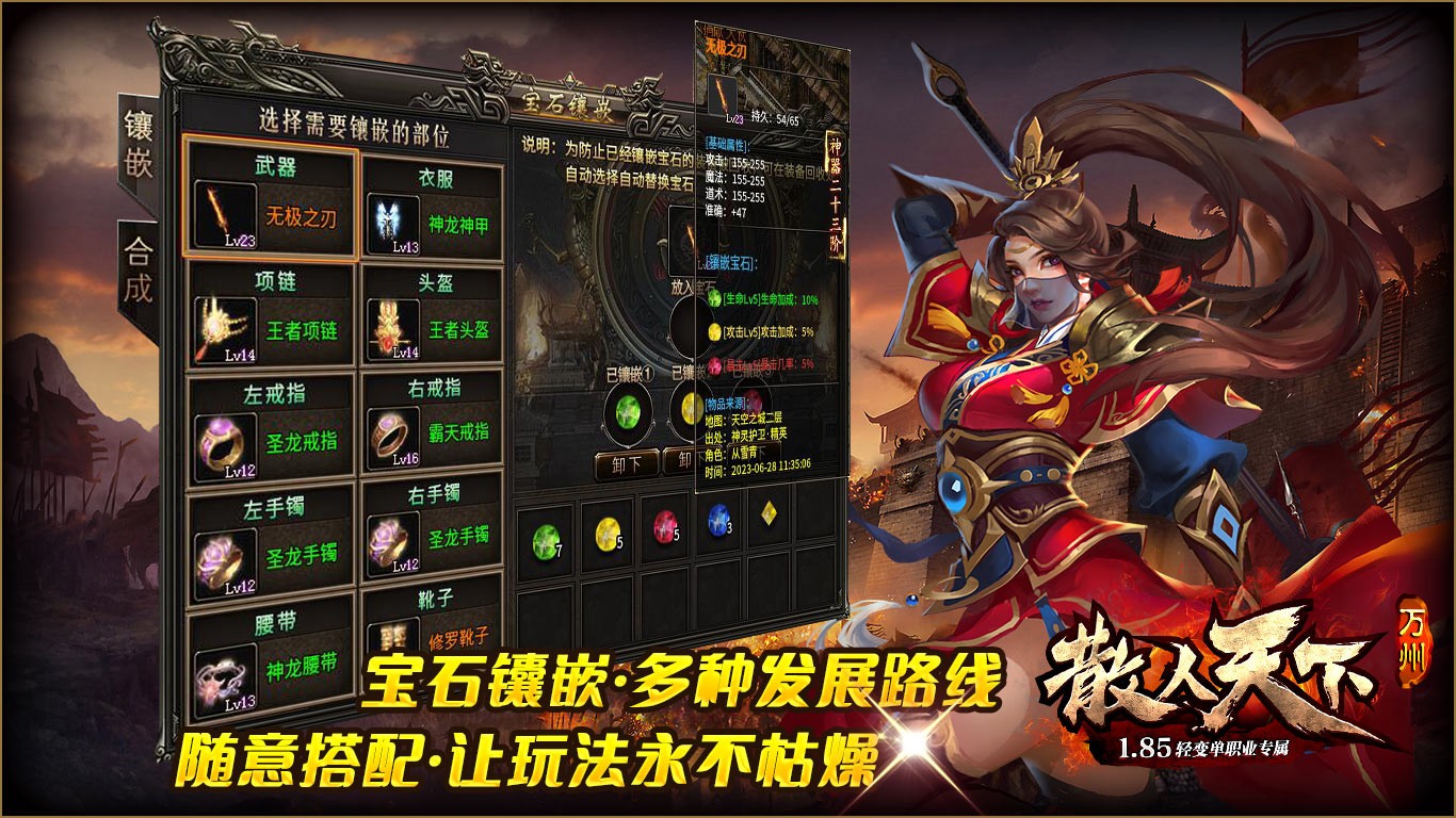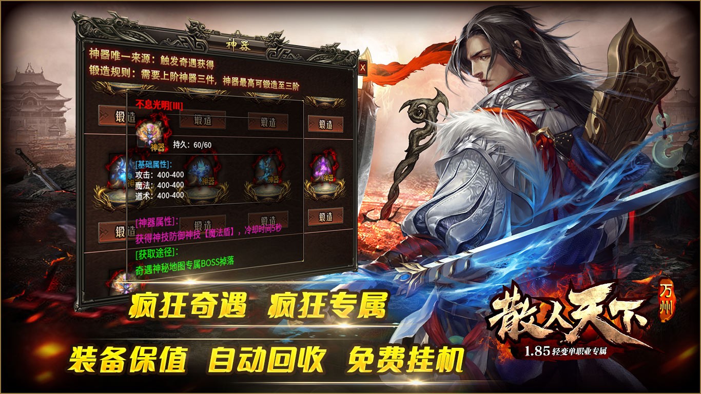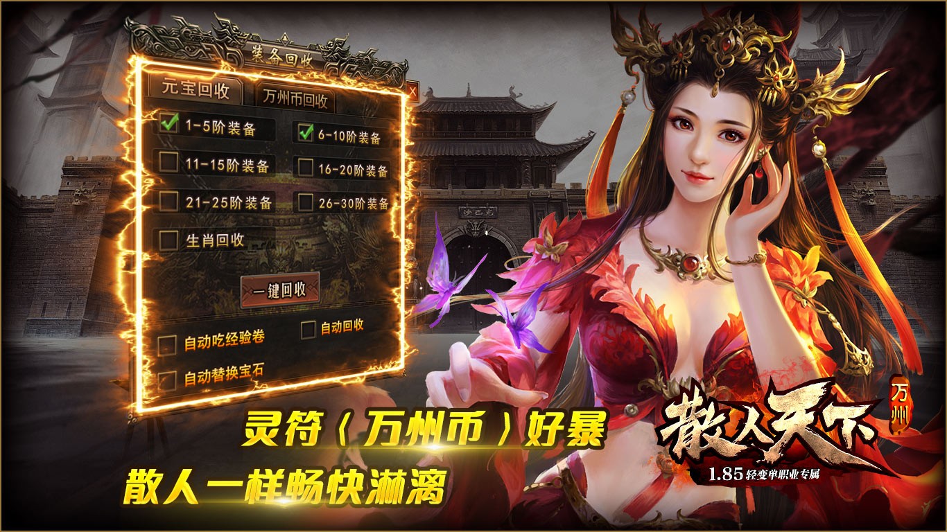 万州散人天下有着精彩热血的传奇玩法,诸多经典的玩法都得到了完美的还原,整体的掉落率相当的高,所有的野怪boss即时刷新,随时都能够加入到高爆打金的战斗之中,与各路高手展开同台竞技,尽情地享受刀刀暴击的爽快体验,书写属于你的传奇冒险旅程。