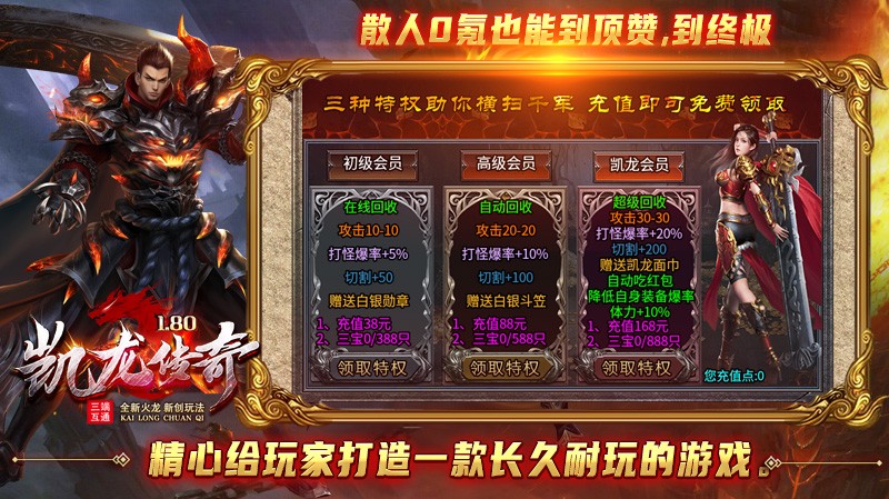 1.凯龙180火龙版本!人物满级75级,自动挂机,货币元宝,内值比例1:10000元宝保值,老板多,会员,等级有保底,一切都可白嫖!