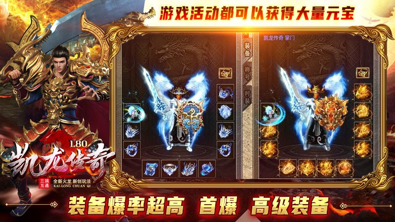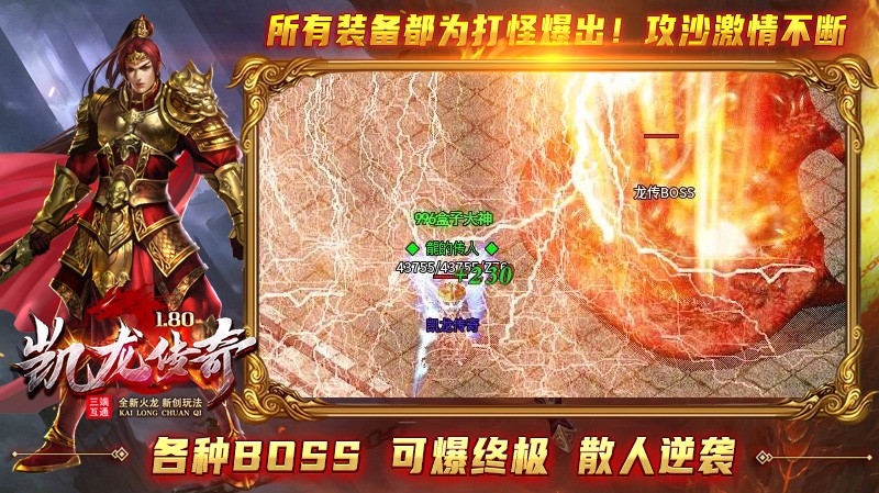 凯龙传奇为玩家带来火龙版本的传奇玩法,整体的掉落率相当的高,开局即可获得满攻速,尽情地享受刀刀暴击的爽快体验,享受千人同屏的震撼感受,收获遍地的光柱奖励,野怪也能够掉落神装,一刀秒怪畅玩传奇,书写属于你的传冒险之旅。
