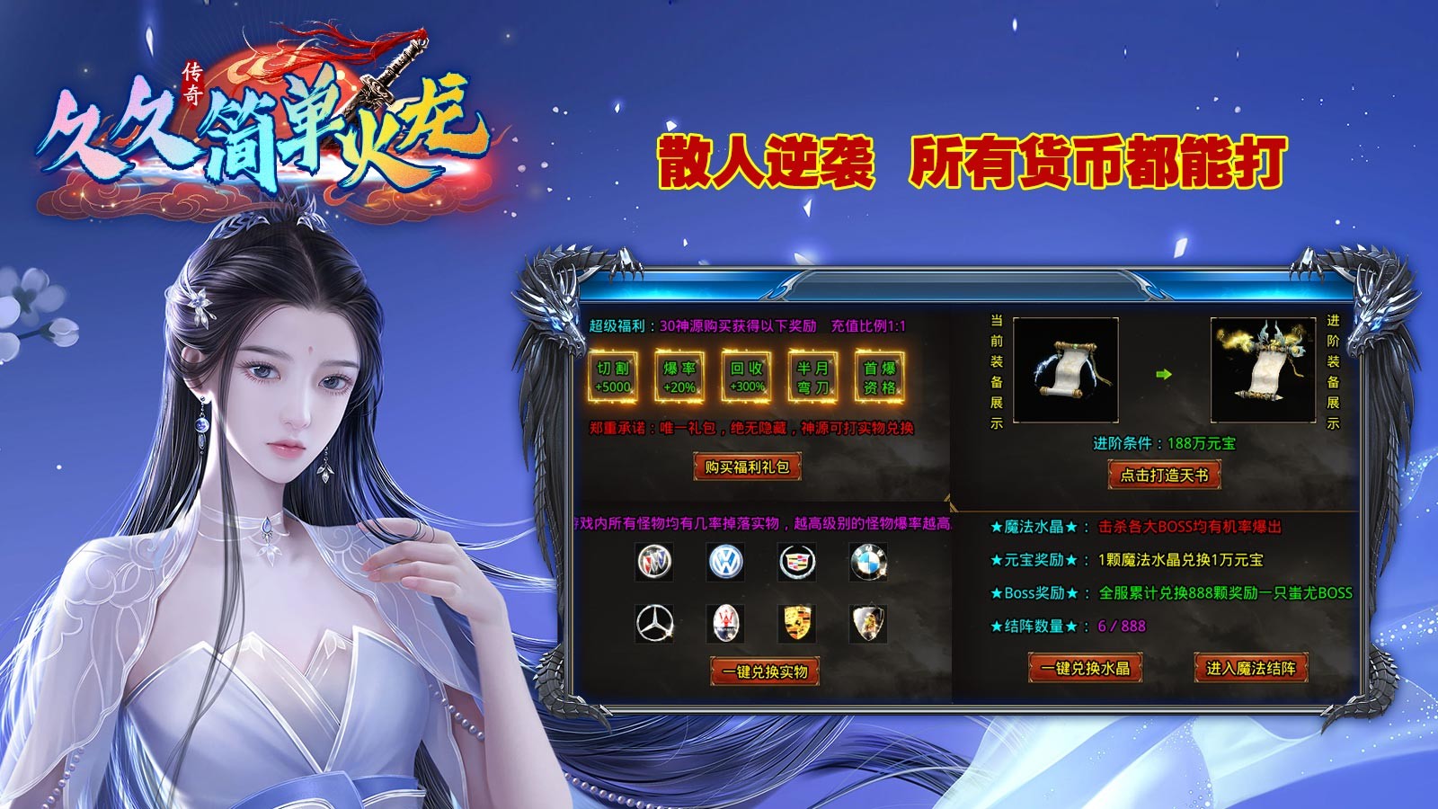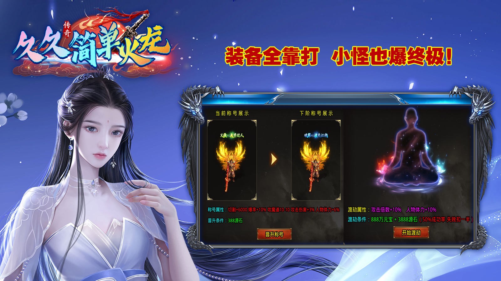 久久简单火龙为玩家带来热血高爆的火龙传奇玩法,复古的场景地图,经典的战道法三大职业都得到了完美的还原,随时都能够自由转职,加入到副本的挑战之中,获得大量的神装奖励,助你到达战斗力的巅峰,称霸整个传奇世界。