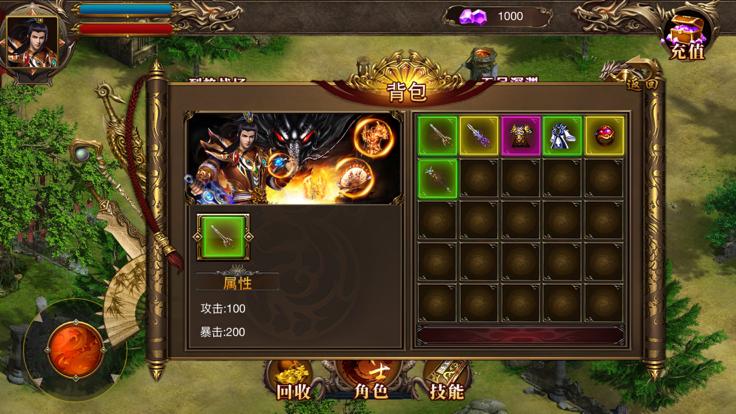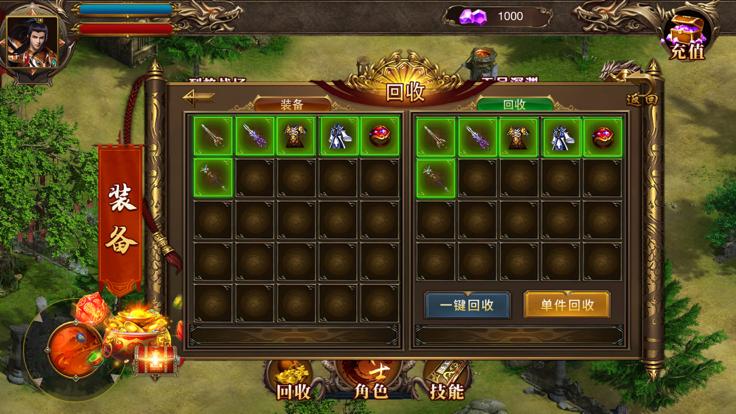 3.掉落的物品自动拾取回收,所有的装备无绑定交易,一键出售强力的神装,助你获得大量的元宝。