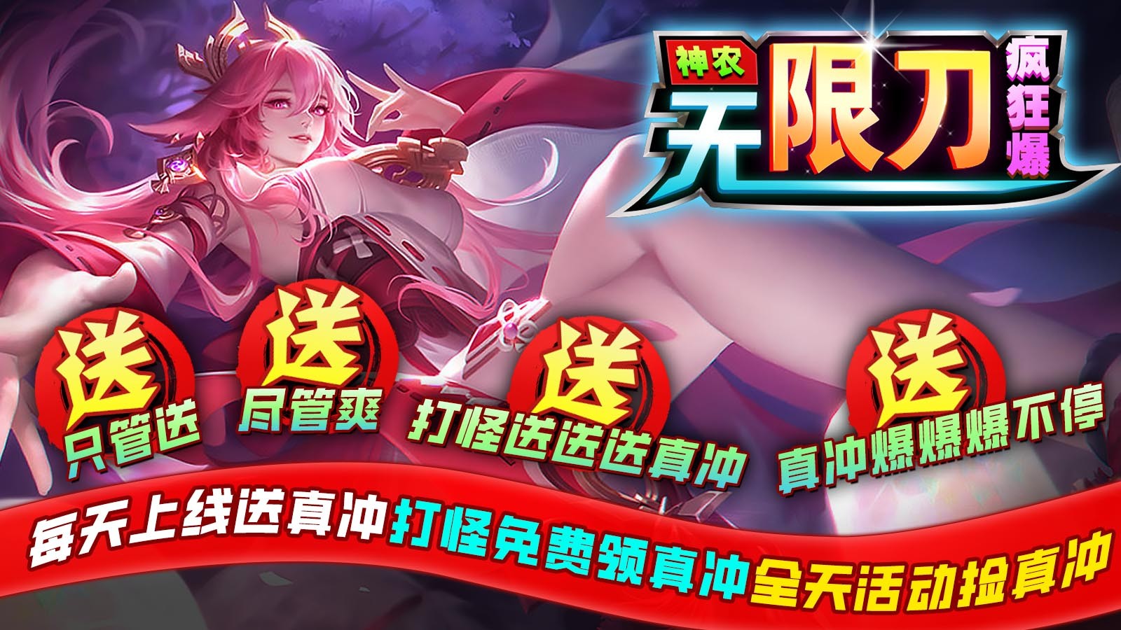 神农无限刀疯狂爆为玩家带来精彩爽快的无限刀玩法,精彩庞大的传奇世界,所有的boss即时刷新,所有掉落的物品自动回收拾取,整体的掉落率相当的高,随时都能够加入到精彩的pk对决中,尽情地享受刀刀暴击的爽快体验,感受热血的竞技对决,畅享爽快的战斗乐趣。