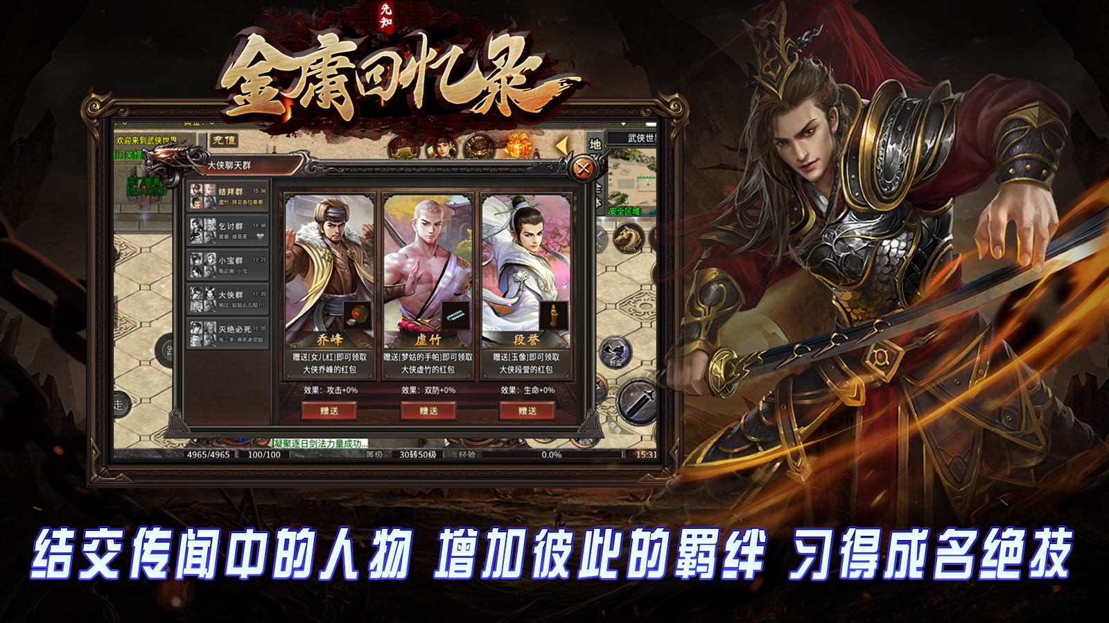 先知金庸回忆录为玩家带来金庸题材的专属传奇玩法,游戏中所有的装备货币全靠打,诸多经典的故事剧情都得到了完美的还原,随时都能够加入到刷怪打金的战斗之中,收获遍地神装的震撼感受,助你飙升自己的战斗实力,散人也能够称霸全服。