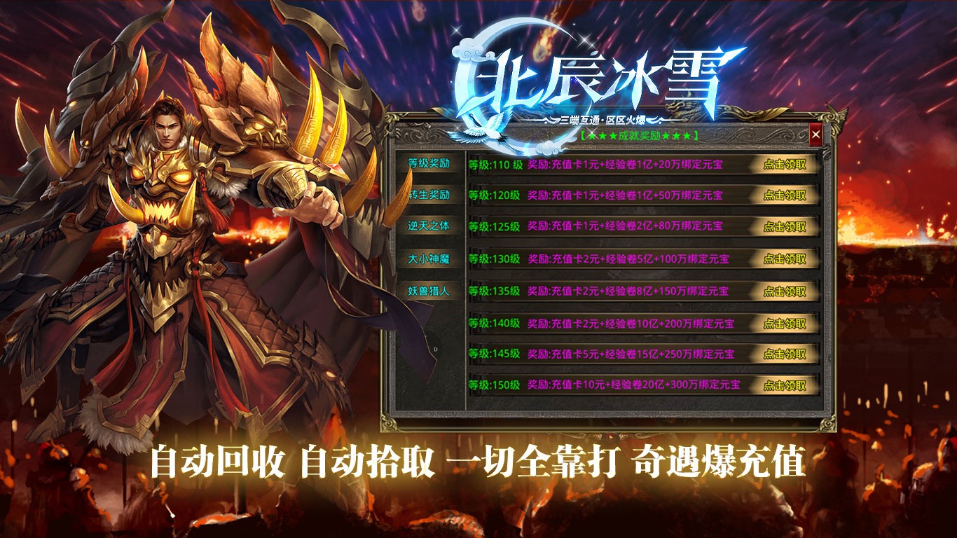 这款游戏有着经典的冰雪传奇玩法,战道法三职业完美平衡,玩家能够自由地进行转职战斗,更多强力的神装无冷却尽情释放,享受战斗的激情热血,感受极致的pk对决,称霸整个传奇世界。