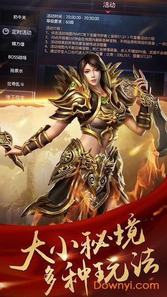 1、创新融入了除魔卫道、守护英雄、皇城争霸等特色玩法,带你再次感受更加刺激的传奇世界。