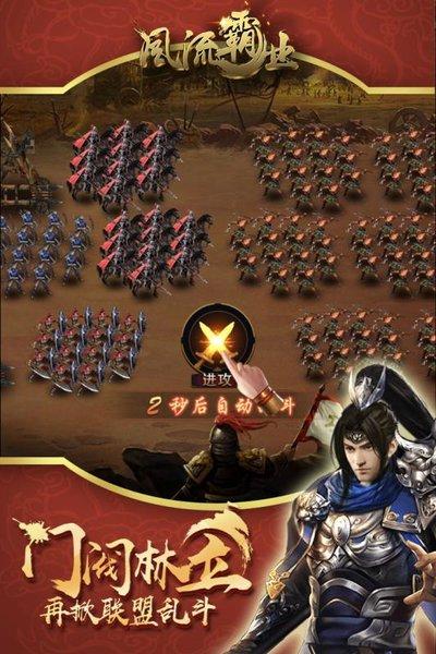 风流霸业是一款原创三国题材策略类经营养成手游。故事将带你穿越至东汉末年,化身为一座无名小城的少城主。以一方霸主的视角完美呈现美人侍寝,名将培养,拜将封侯,培养子嗣,亲家联姻,校场比试,讨伐逆贼,镇压土匪,世界通商,联盟争斗等精彩玩法!你将同千万玩家一同逐鹿三国,统治别人还是被人统治,快来挑战自己,成就别样风流霸业!