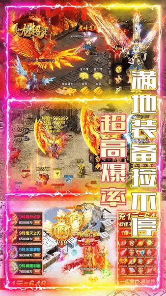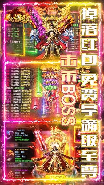 超高的装备爆率满地的装备捡到手软,上线送称号时装,送vip10,还有各种钻石元宝超炫超酷,打boss更有红包可得,而且釜底抽薪火龙超变还是单职业的玩法哦