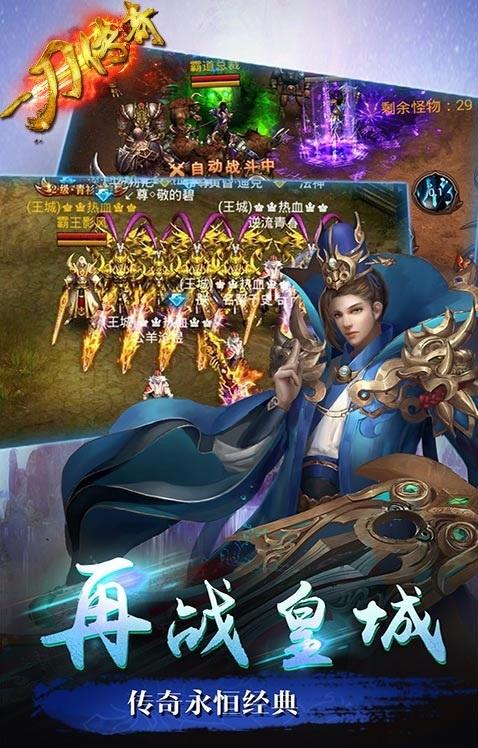 一刀传奇传承战法道经典职业组合,主打热血动作格斗,高清精致的游戏画面,战法道三大职业还原,超多内容,自动打怪升级,一刀9999,享受快意厮杀无压力!沙城野战、boss围猎、野外pk、全服天梯、公会争霸玩法悉数登场!同屏万人战,强者为王战力无限;爆款掉落,顶级装备打本就能得!