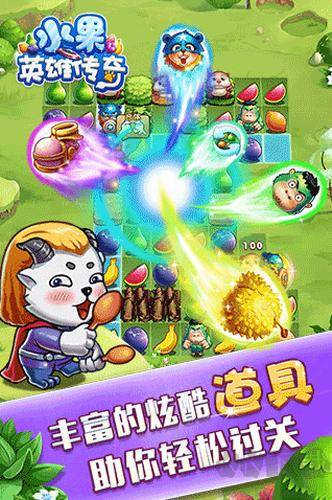 水果英雄传奇是一款以三消为主的休闲闯关游戏,游戏中玩家的水果小英雄可以通过消除各种各样的水果获得技能和能力,然后你的小英雄就可以使用自己的技能和攻击来打倒对面的小怪兽,游戏的玩法比较有趣和新奇感!清新的画风,炫丽的消除特效,给你带来充沛的视觉享受,快来下载游戏吧!