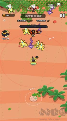 1、在每个关卡中都有大量怪物出现,寻找安全的位置自由射击,提升等级解锁新的技能。