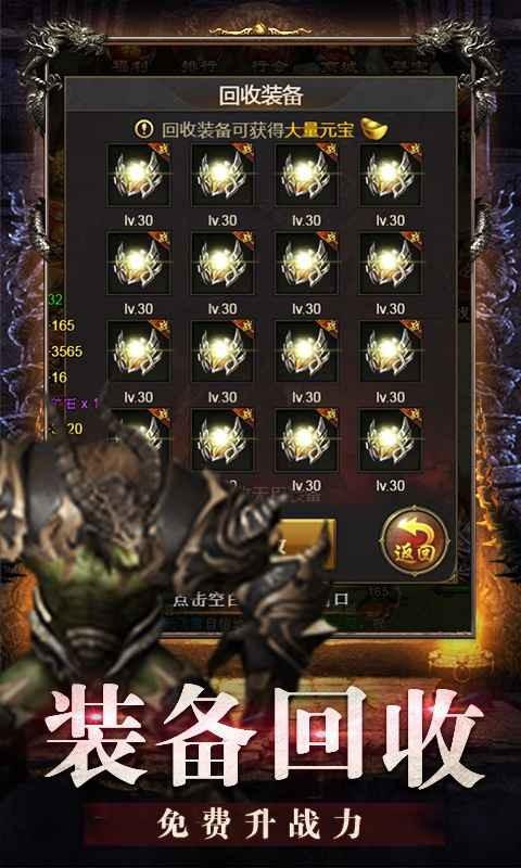 随时随地回收装备,元宝秒到账,收编BOSS,战宠技能合击。