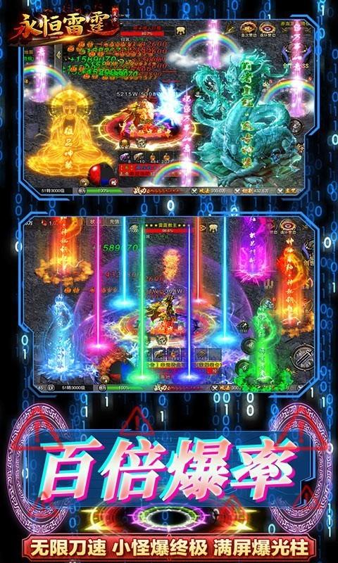 永恒雷霆游戏中有经典的传奇玩法,有真实的武器和道具,还有很炫酷的特效画面,各种神装人人都有,还有满屏的光柱资源,轻松暴打小怪,而且还有复活自己的强大神器,一个很值得大家来玩游戏!
