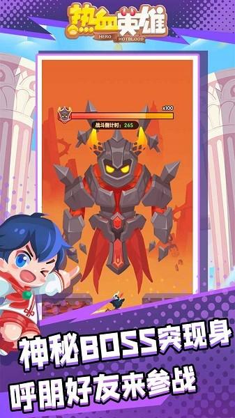 《热血英雄》是一款闯关+挂机结合的游戏,采用Q萌画风,带玩家进入一个轻松愉悦的世界,美轮美奂的战斗场景,Q萌的怪物,形态各异的佣兵,和强大宠物,点击玩法,攻击特效、魔性的配乐,给玩家闯关带来超凡的指尖体验和超爽的游戏体验。玩家可以根据喜好选择培养角色属性,觉醒独特的天赋,解锁强大的技能,打造炫酷的装备系统,创造出专属的英雄,升级忠实的宠物来为你而战,召集各路佣兵成立战斗军团来对抗巨人霸主,收集装备、套装、神器等展开一场巅峰的对决!