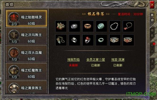 赤焰复古是一款让玩家畅爽打金肆意挑战不同副本的经典传奇游戏,在这款赤焰复古游戏中有着各种各样不同的挑战关卡任你体验,顶级画质配以最近全新制作场背景,使人享受不已,让所有玩家都无法忘记身处其中的日子,自由在线PK,可以组建帮会....