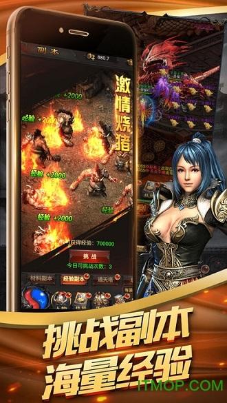 烈焰天下是以1.80合击版本传奇为基础改编的,全新合击传奇手游,复古回忆感十足。游戏上线就送满vip会员,平民玩家、白嫖党首选;游戏再现攻城玩法,万人同屏,皇城决斗,谁才是真正的霸主。烈焰天下手游官网介绍《烈焰天下》是一款经典合击手游,拥有战士、法师和道士三种经典传统职业的一款MMPORPG三大职....
