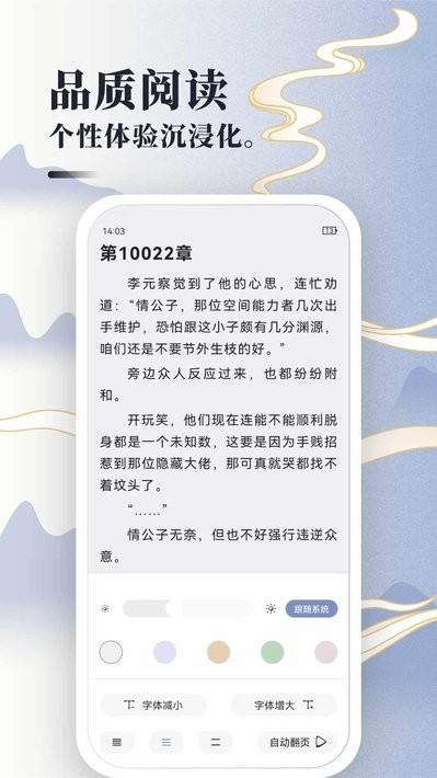 阅读界面随意个性化设置,您怎么舒服怎么来。