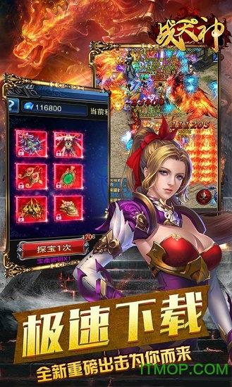 《战天神》是一款全新的单职业动作冒险类传奇游戏!主要以升级、爆装备、攻沙、跨服远征为核心,丰富多样的玩法,华丽炫酷的时装特效,高清画质极致视觉盛宴。击杀BOSS可触发超级幸运红包大爆,免费直升满级VIP,闯关专属地图爆守护神装。还有每日跨服屠魔免费抽神壕套装!