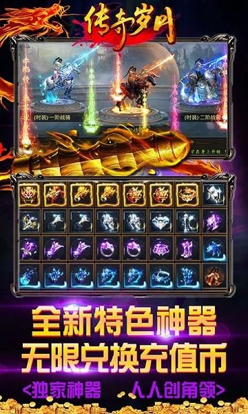传奇岁月超变新神器手机版非常经典的打金传奇手游,各种炫酷的技能特效,让你眼花缭乱,而且游戏的爆率非常高,击杀boss,能够爆出各种稀有的神器,登录游戏之后,还有大量的游戏福利,免费领取,还等什么,快来下载吧!!