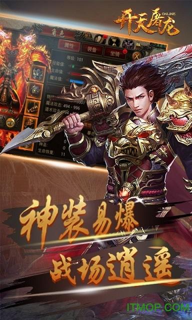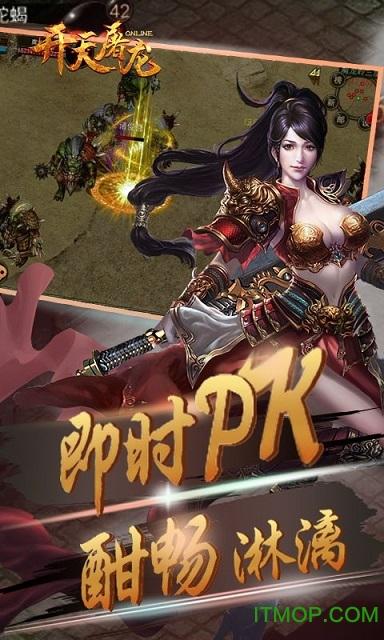 拒绝无脑PK,神级操作带你风骚走位.《开天屠龙》带你且跑且PK!多点触控,即时战斗,风骚走位,杀神降临!绝杀红名爆装备,只要你战力高、操作好,每个人都是你的移动宝库!个人PK、组队PK,玩法多样,高度自由.激发酣畅淋漓的秒杀感,享受顶级一流的打击感,体验超神的畅快感.