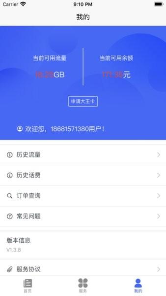大王卡管理助手,大王卡在线办理,选手机靓号,查流量,查话费,查套餐,查订单,您的专属掌上营业厅。
