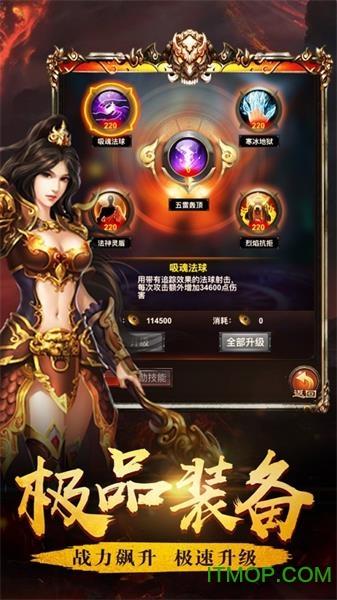 1、各种熟悉的百变传奇绝技,尽情的挑战指定副本爆落技能书,随时强化技能作战等级。