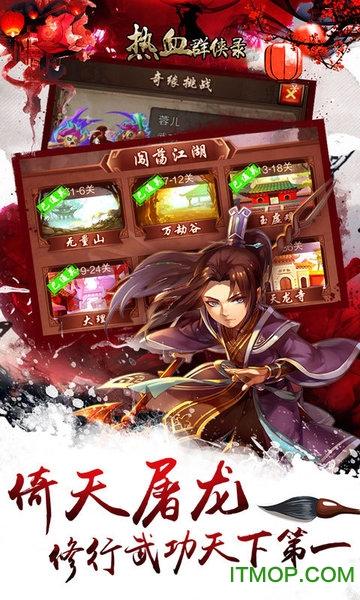 热血群侠录单机版是以国风武侠为核心的战斗手游,玩家将参与到游戏江湖中,行侠仗义持强扶弱,IT猫扑分享热血群侠录内购版下载,想圆江湖梦就快来吧!