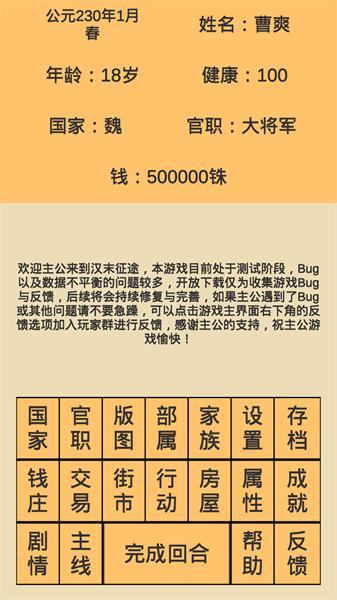 汉末征途手游是非常好玩的一款策略类型的文字游戏,在这里玩家们能够在东汉三国时期发展自己的势力,也能够选择一个势力进行加入,让自己能够在这个世界中建立起自己的业绩,享受一个不一样的人生经历,超级的好玩。
