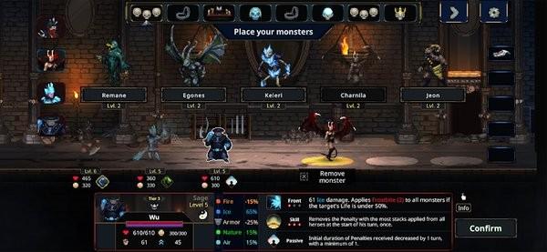 4、多样化您的管理风格:扮演3个地牢大师,每个都有自己的能力和新兵,通过各种活动