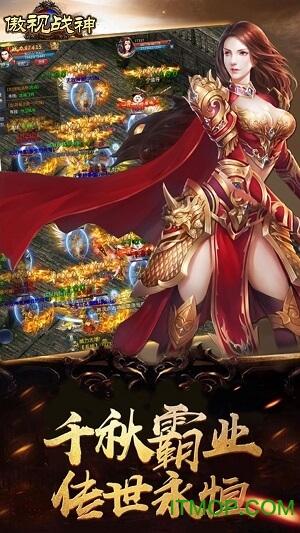 《傲视战神》是一款传奇题材热血MMORPG手机游戏。重交互、强PK,手机千人同屏,再现万人攻沙,随时随地重燃战火,轻轻松松;携佳人,令诸雄,创行会,畅快PK之余人情味更浓。2020年人人都玩的传奇类手游——《傲视战神》沿袭传奇世界、热血传奇等经典大作的热血PK游戏体验,并以“实在”,“痛快”的研发理念,让动作更带感,技能更酷炫,装备获取更直接,画面更写实痛快。力求让玩家体验到强效速爽,实在痛快的自由真人PK体验。屠龙宝刀,黄金战甲,炫酷坐骑免费赠送,多样福利拿到手软