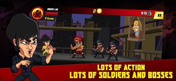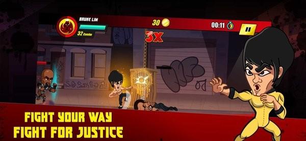 李小龙传奇归来手机版英文名为Bruce Lee,是以李小龙为主角原型设计,采用卡通风格形象画面渲染呈现,打造多种多样的关卡场景,提供不同的技能招式灵活释放,打败更多的敌人对手,不断练习,提升技巧,成为传奇专业功夫斗士,赢取冠军奖励!