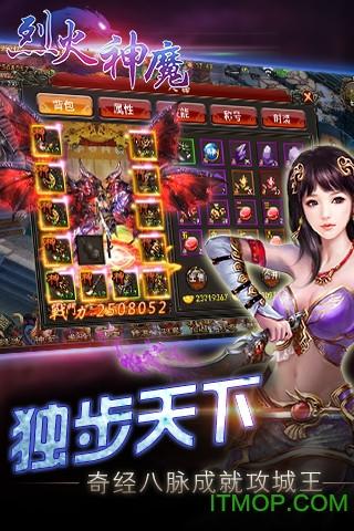 烈火神魔破解版是2017年度特别火爆的一款神魔类角色扮演手游,这款游戏画质精美,游戏玩法创新,拥有独特的奇经八脉修炼系统,打通任督二脉,一跃成为武林高手,修炼奇才!感兴趣的快来IT猫扑下载吧!