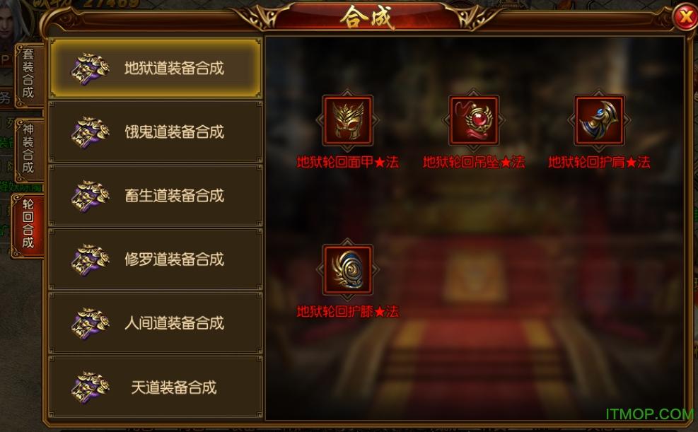 升级轮回系统,可佩戴轮回装备,轮回装备通过合成获得。
