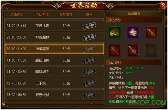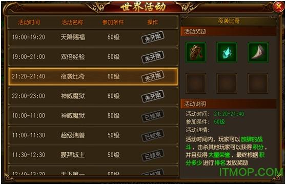 ①四大竞技分别对应玩家的等级、翅膀阶数、龙心级别、狼牙级别
