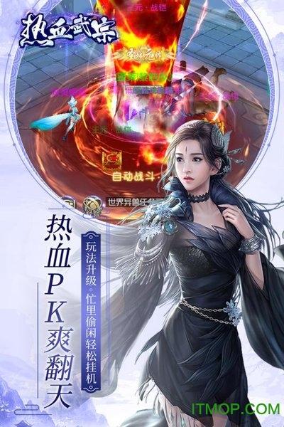 《热血武宗》是一款东方仙侠MMO角色扮演手游,全新仙侠画风,全局开启无锁热血之战绝对激爽,全程体验连招快感,游戏画面精美,剧情丰富,更有独特的修仙玩法、婚恋系统、霸气萌宠、炫酷神兵。跨服战场,多服高手同台竞技; 冰火战场,号令阵营抢夺哨塔; 群雄帮战,不同帮派守护旗帜; 全天活动,24小时活动不间断,定乾坤,救苍生,迎接全新的修仙之旅吧!