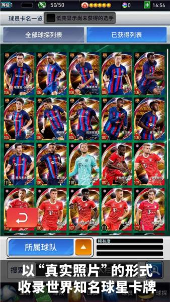 ●以真实球员相片的形式 收录世界知名选手卡牌!