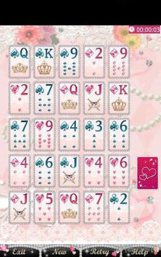公主扑克牌是一款棋牌类手游,本作作为女性向游戏画面十分精美,是上下班、上下学、等打发时间的必备游戏,感兴趣玩家赶紧下载试试吧!《公主扑克牌》一改传统扑克牌在玩家心目中的印象,专为女性所设计的,整个游戏充满着粉红色的温馨氛围,玩家可以在游戏中更换纸牌或背景的设计,同样还有有闪亮亮的宝石纸牌和有小狗小猫耳朵超可爱的宠物纸牌两种设计可供选择。纸牌的花样多达12种(宝石和宠物各有6种),背景也有9种样式,尽情搭配出您喜爱的组合吧。
