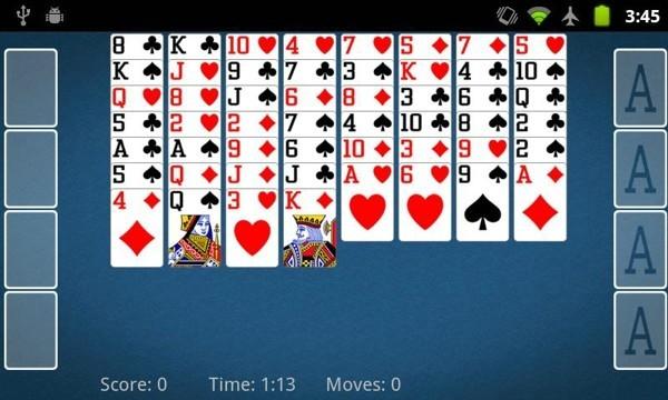 空当接龙是由西安同启通讯科技有限公司推出的一款经典纸牌游戏,移植于PC,让玩家们可以在手机上也可以体验游戏。经典的游戏规则,易于操控的界面,支持易于操控的界面,按从小 (A) 到大 (K) 的顺序排列获得胜利,喜欢的朋友欢迎下载体验。