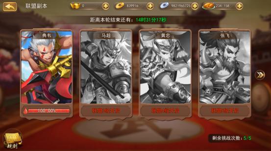 联盟等级越高,可以挑战的副本越多,但是由于挑战次数有限,所以主力攻打哪个副本就要看盟主的指挥与智慧了。