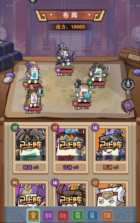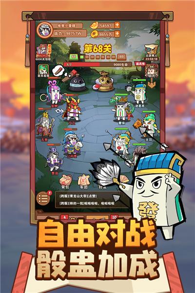 2、自由搭配:无论是魏、蜀还是吴,玩家都可以自由招募武将,依据武将的不同特质来构建个性化的战斗阵容。