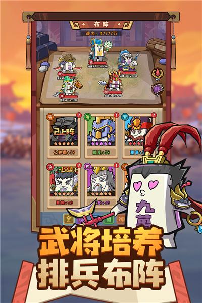 2、玩家可以从弱小开始,通过不断地挑战和冒险,提升武将的能力,解锁更强大的技能,亲手培养出属于自己的三国英雄团队。