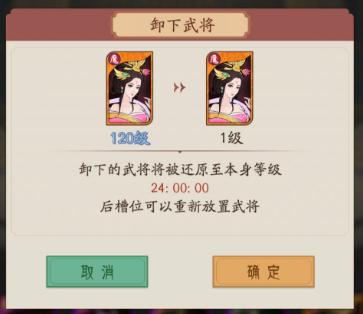 至于我们放上去的武将也是可以手动更改的,只不过将武将撤下后,其位置会有24小时的冷却时间。可以消耗元宝立即清除冷却时间。
