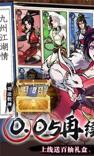 九州江湖情0.05折是一款独具匠心的武侠风格放置卡牌游戏,将您带入南宋末年的动荡江湖。战乱四起,各路英雄儿女纷涌而现,你将肩负重任,从一个边陲小派的落魄弟子,逐渐成长为名震天下的一代宗师。你的师门风雨飘摇,师父神秘失踪,师弟亦不靠谱,如何在乱世中闯荡,成为正义的化身,或是邪道的霸主?在九州江湖情0.1折中,每一个选择都将成为你独特江湖路的起点,让你亲手书写一段只属于你的武侠传说。