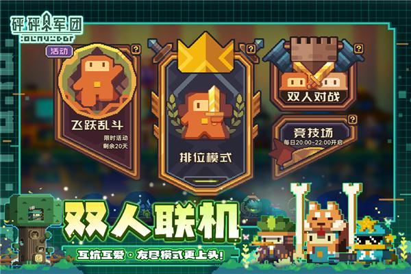 砰砰军团是一款非常好玩的实时策略卡牌游戏,全新的像素类策略,让人眼前一亮。玩家们将带领短手又短脚的小豆丁战斗,战士、射手、坦克、法师等角色职业众多,每个豆丁都有着不同的属性和技能,玩家需使用不同类型的士兵来应对不同的敌人,在敌人前进的路上设计防线和陷阱来阻挡敌人的进攻,体验其中的各种欢乐,获得更多资源训练小豆丁,建设村子,不断升级自己的装备和技能,提高自己的战斗力,迎战更多更强对手的挑战。砰砰军团游戏里还有双人对战与升级派对等多种模式,玩家可邀请好友联机PK,讨论策略,制定对战计划,加入不同的公会,与其他玩家进行对抗,比拼自己的策略和技能,享受更多的乐趣,感兴趣的玩家快来试试砰砰军团吧!