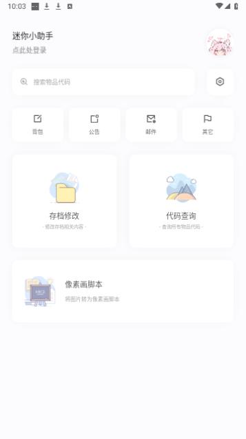 迷你小助手是一款迷你世界游戏盒子软件,能够为各位迷你世界玩家提供各种游戏攻略服务,包括存档修改、代码查询、像素画脚本等等功能,并不是什么外挂软件,使用合法,为玩家们带来更丰富的游戏体验。