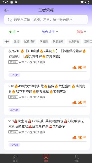 租号控是一款十分不错的租号软件,这款软件里面有非常多的游戏账号出租,不管用户想玩什么游戏的账号都能够在这找到自己喜欢的,并且软件将所有游戏的账号都进行了十分详细的分类,用户能够快速找到自己需要的账号,另外游戏中的各种账号都十分的便宜。