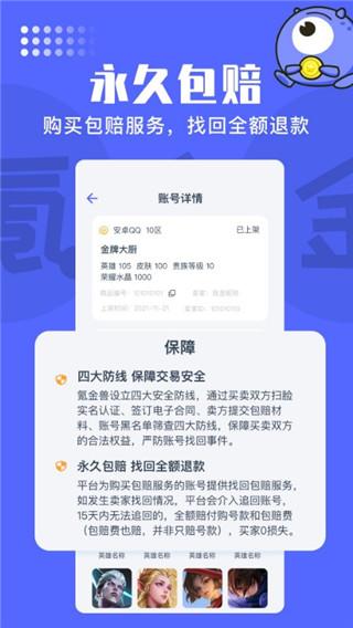 为玩家们提供安全有保障的游戏账号交易服务,四道安全防线,保障交易安全,签订法律合同,找回即可起诉。平台购号可选永久包赔服务,出现找回意外平台先行全额赔付。