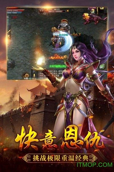 炫酷套装,炫彩仙翼,百人同屏PK,重温经典传奇。经典战法道、极爽英雄合击、打怪掉宝、自由PK、行会争霸、皇城决战等传奇经典元素都将在手游中呈现。