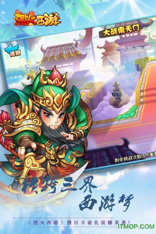 西游策略rpg大作:烈火西游携百万豪礼震撼来袭!丰富的策略战斗,让游戏告别枯燥无味!合击斗法,一秒制敌!新服登录累积赠送15万元宝,直达vip6!各路美女神仙妹妹,紫霞仙子、聂小倩、小龙女…....纷纷前来投奔,任你挑!来玩即送极品橙将:孙悟空、牛魔王、二郎神……众多神将等你挑选!