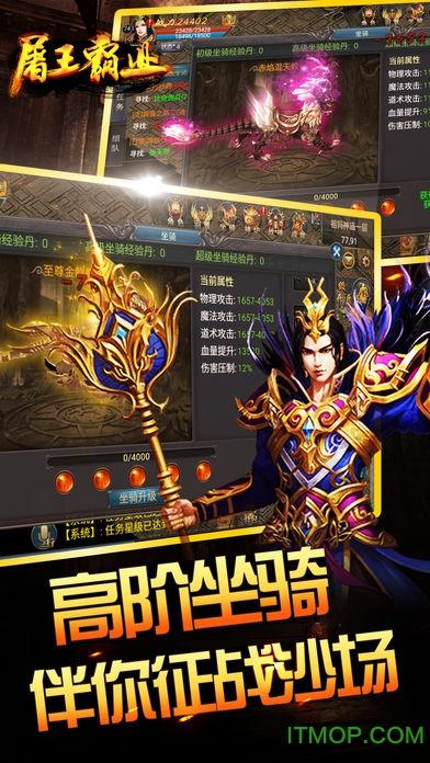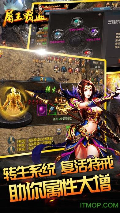 屠王霸业手机版是一款剧情玩起来非常生动活泼的传奇类手游,其中丰富的活动等待这你的体验,沙场征战的时候注意与兄弟战友进行配合,神器的装备绝对是最好的选择,欢迎你来IT猫扑下载
